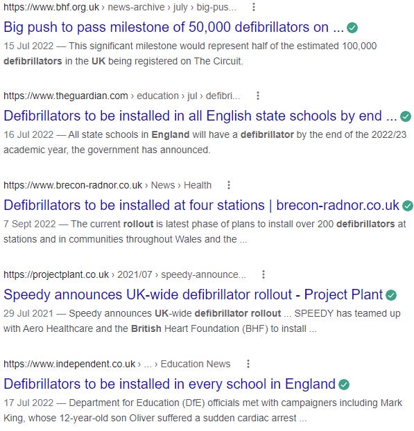 Me: ‘‘Hang-on a minute. The government want to place a defibrillator on every street in the country, and have everyone within 5 minutes of one at all times?’’