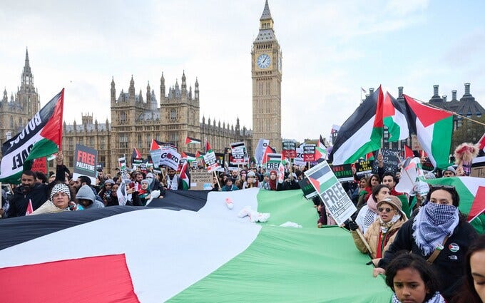 The British Government has been confronted with a rather sticky geopolitical situation for the last month: the people who care the most about Middle Eastern politics disagree with the geopolitical stance of the Government. The left and the Islamic community have taken to the streets in opposition to Israel’s highly questionable “war” in Gaza. They’re fully energized and, for once, seem to have a genuine cause to rally behind. The long-suffering masses from Middle England, ignored and bullied for decades, had seemingly checked out of politics and given up. Or perhaps, for whatever reason, they just didn’t care about either Israel or Palestine. The situation for the government was uncomfortable. They supported what increasingly seemed like severe human rights abuses and perhaps even genocide, but without any vocal base of support.