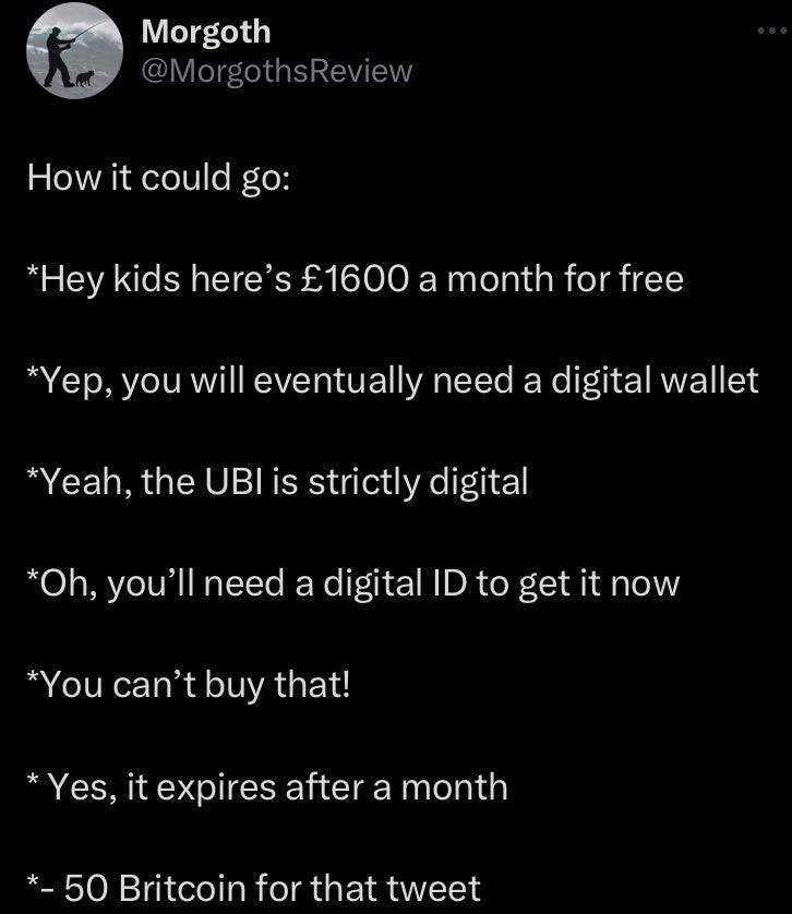 He’s right! People have been pushing for UBI for years and it was widely regarded as insanity. Yet now, all of a sudden, the elites are rolling it out in trials and speaking openly about it. Is this because the oligarchy can no longer withstand popular sentiment? Or, and excuse my cynicism, is it because the technology now exists to make it entirely digital and part of a much more expansive program to drag the masses onto a digital surveillance grid?