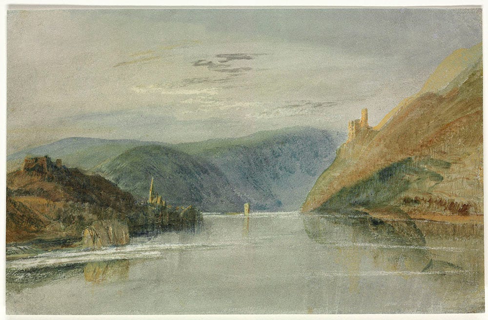 Personally I believe the Romanticist influence on Tolkien is much under appreciated, but nevertheless, the Rhine as depicted in Romantic paintings conjures an other-worldly timelessness. The constructs of man can often been seen in ruins along its banks or overlooking the meandering, snakelike flow of water dominating the landscape.