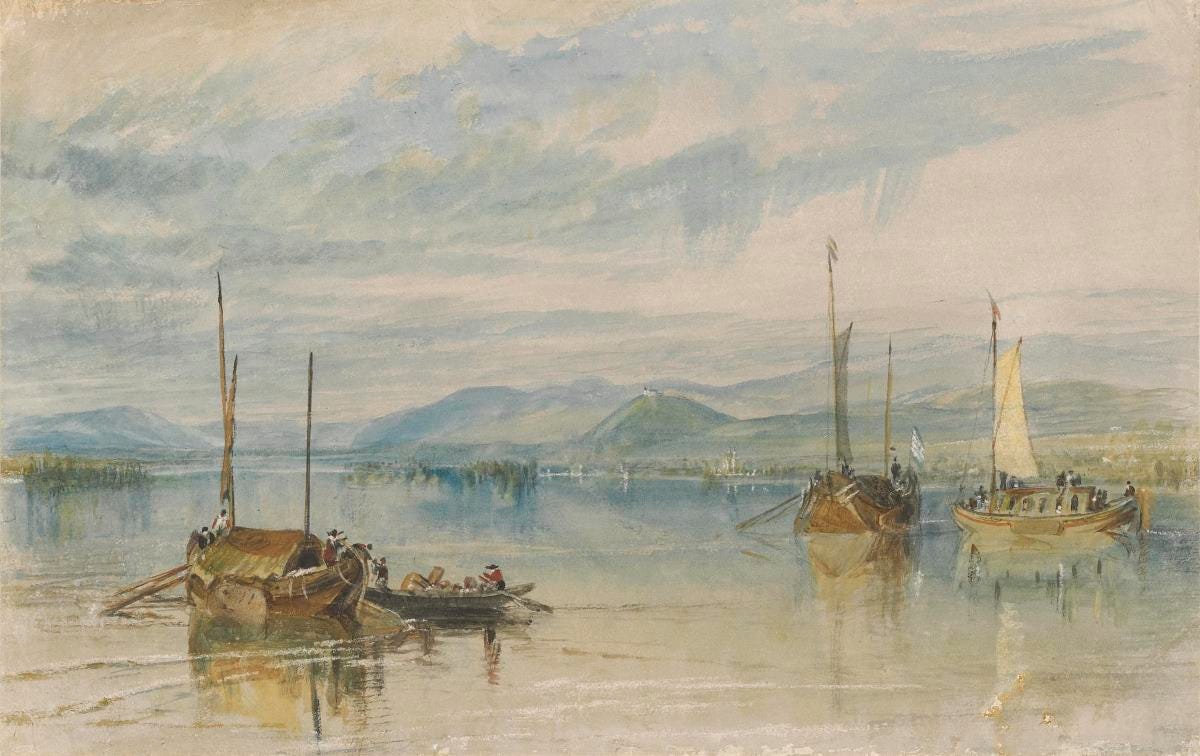 The Romanticism of the 1800’s, both musically and in the realm of painting, was an attempt to re-enchant or protect the sense of sacredness of European soil and spirit. The Rhine played no minor role as a source of inspiration, perhaps most famously with Wagner’s Ring Cycle we see the mythologizing of the great river. Wagner’s Ring Cycle was itself drawing from earlier Germanic legend and the Nibelungenlied.
