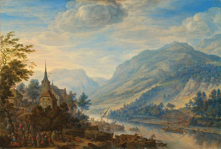 However, what struck me about the reporting and general attitude toward the Rhine that we see today was the sterility of the strictly utilitarian and mechanistic mindset of the current era. The Rhine running dry is a problem because Germany relies on it for transporting goods and material. It’s also possible that Germany’s already chronic energy troubles will be exacerbated still further by the Rhine being reduced to a mere trickle of its former self.