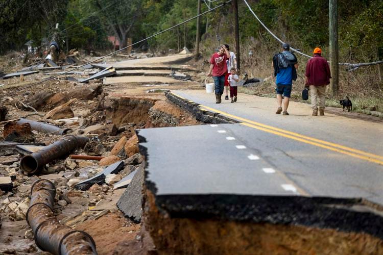 Much has been said about the American Government coughing up billions of dollars for Israel and Ukraine one week and then its reaction the following week to the Appalachians being washed away by what some reputable sources claim was the equivalent of Lake Tahoe falling on North Carolina over just a few hours.