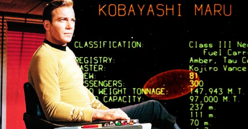 The Kobayashi Maru scenario is not real, but a scenario that teaches defeat to cadets. Unlike Captain Kirk, we cannot rewrite the program. This essay also represents a hypothetical scenario, though already partially played out in reality. In the event of conflict, opinions that are standard fare within the Online Right will be seen as threats to National Security. On the other hand, to reluctantly side with the Regime once the firing begins would leave a bad taste in the mouth and everyone would know who and what they had now folded themselves into.
